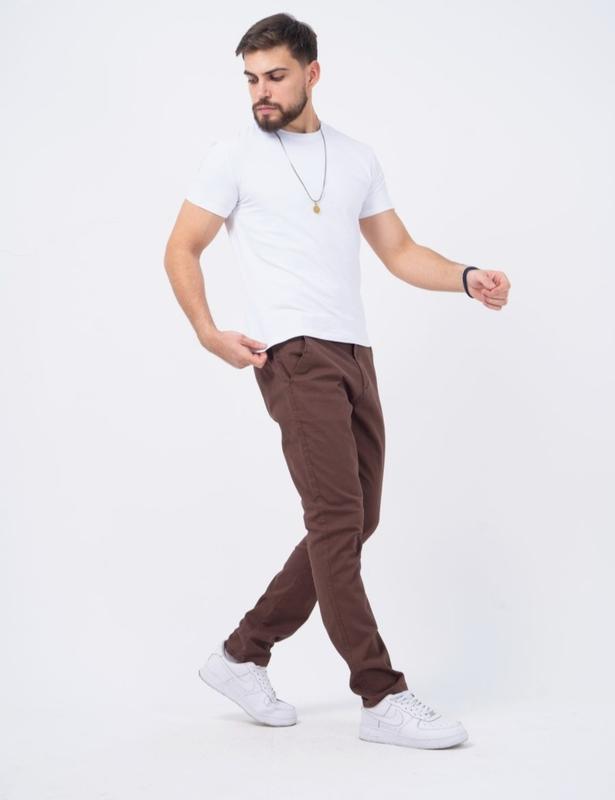 Мужские брюки Штанина пряма, внизу завужена Тканина тягнеться Склад 98 % бавовна , 2 % спандекс Качество люксовое 29 р - длина 106, по шаговому шву 80, полуобхват пояса 37, полуобхват бедер 47 31 р - длина 108, по шаговому шву 81, полуобхват пояса 39, полуобхват бедер 49