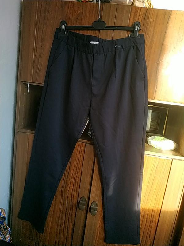 Якісні, тонові, лінія штани.Зручні, класично виглядають, граючи на гумці.Блакитні кишені. Пот-42 поб-54 см довжина-102 см. Чорні.відмінної суміші.
