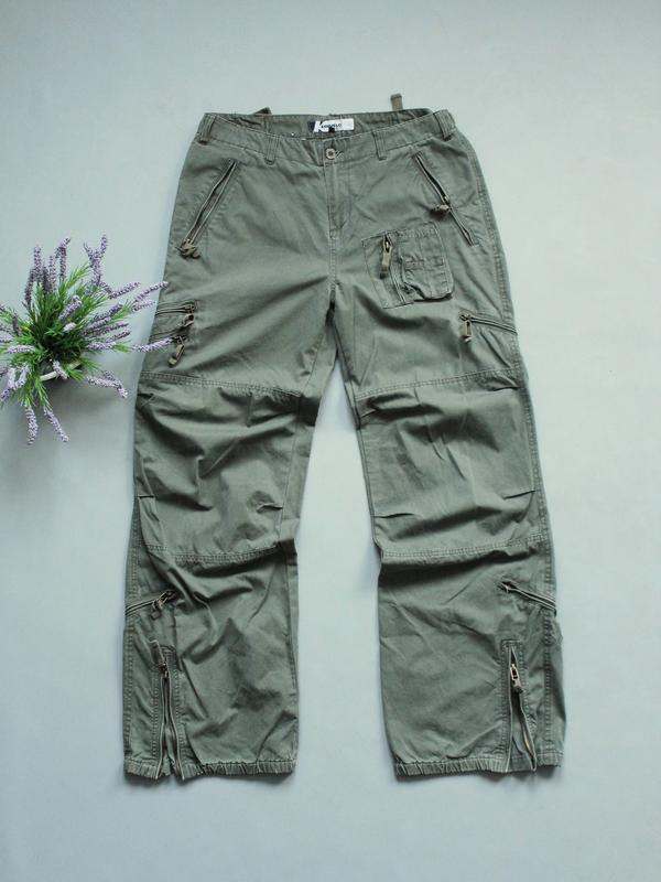 kenvelo multipocket cargo pants - широкі штани з купою кишень на блискавці - внизу широкі, без затяжок - стан: ідеальний - розмір: 32 по бірці Довжина по боковому шву 108 Довжина по внутрішньому шву 79 Напівобхват поясу максимальний 46 (по бокам можна затягнути за допомогою ремінців регулювання аж до 39см) Висота посадки спереду 30.5 Вихід штанини внизу 26 см / 28 в розстібнутому стані Стегно від мотні 31.5 - способи замовлення: 1) повна оплата з можливістю повернення (доставка в обидві сторони залишається на покупцеві) 2) мінімальна передплата 130 грн (решта сплачується на пошті) 3) безпечна угода