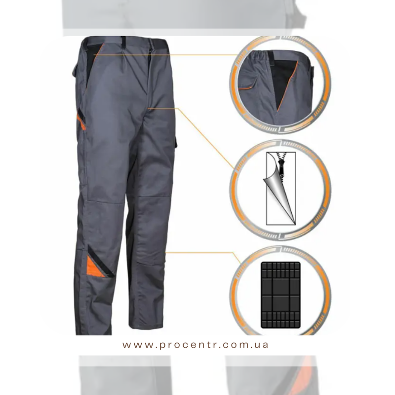 Профессиональные брюки Изготовлен из прочной специализированной ткани 65% полиэстер и 35% хлопка 320 евро/- 10 грамм/1м2 и прочным плотным плетением. Размеры в наличии: 44-62 Характеристики спецштанов: профессиональное шитье и эстетика тройные и двойные швы и многочисленные твердые болты укрепления областей, особенно уязвимых к разрыву 5 карманов, дополнительный армированный карман счетчика подкрепление на задних карманах 2 сшитых коленных кармана для сменных коленных колен низкая усадка, даже после повторного мытья цветовая стабильность Цвет: сталь с оранжевыми и черными вставками