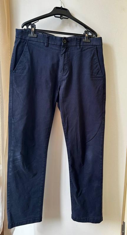 Чоловічі брюки синього кольору, є нюанс на правому коліні(трошки потерті)
