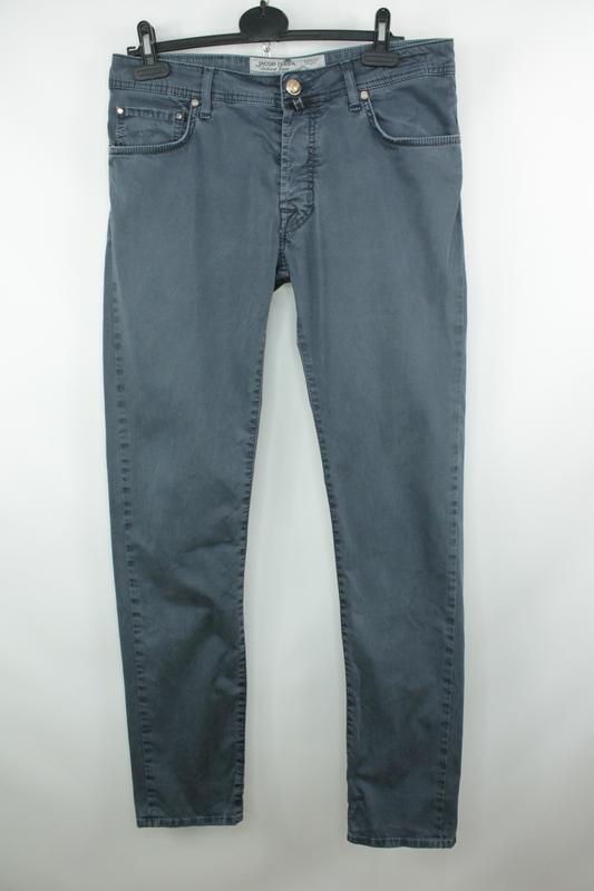 Качественные брюки ручной работы JACOB COHEN PW688 Comfort Stretch Cotton Slim Fit Pants, Легкие стрейч-хлопковые брюки с пятью карманами, детализированные открытыми плоскими цветными пуговицами и скрытой застежкой на пуговицы, приталенной отделкой и нашивкой с логотипом из волос пони. Отличное бы.у состояние, без дефектов Размер W34/L34 Цена 2400 грн Пояс 44 Бедра 56 Стегно 30.5 Посадка спереди 25 Крок 86 Длина 110 Выход снизу 17