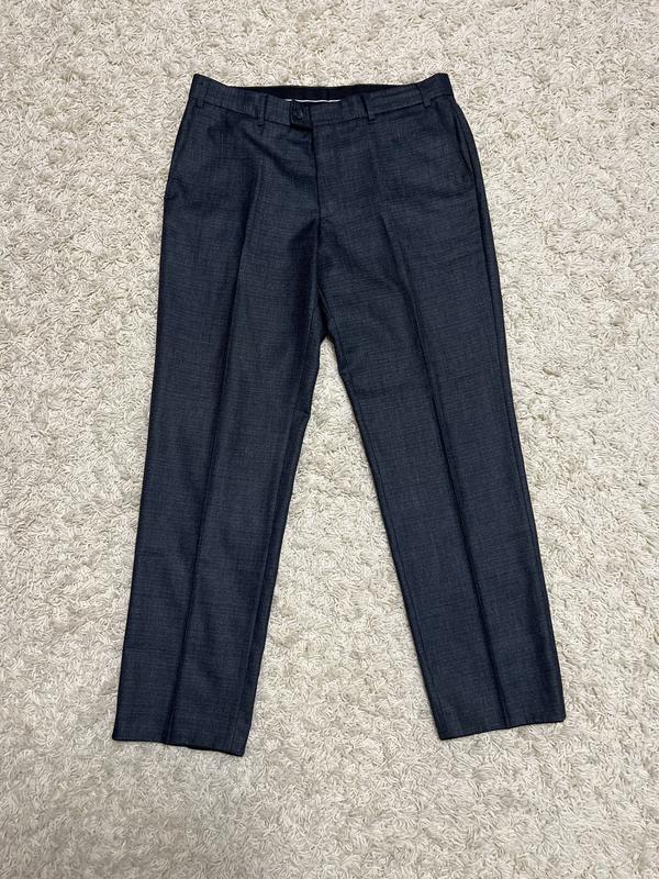 Брюки в новому стані, дуже гарний темно сірий колір, кишені всі робочі, заміри: пот - 48 см, поб -57 см, довжина по бедру - 110 см, всередині -82 см, висота посадки спереду-32 см, позаду 38 см , полуширіна низу штанів 22 см Відправляю після оплати на карту. Повернення немає