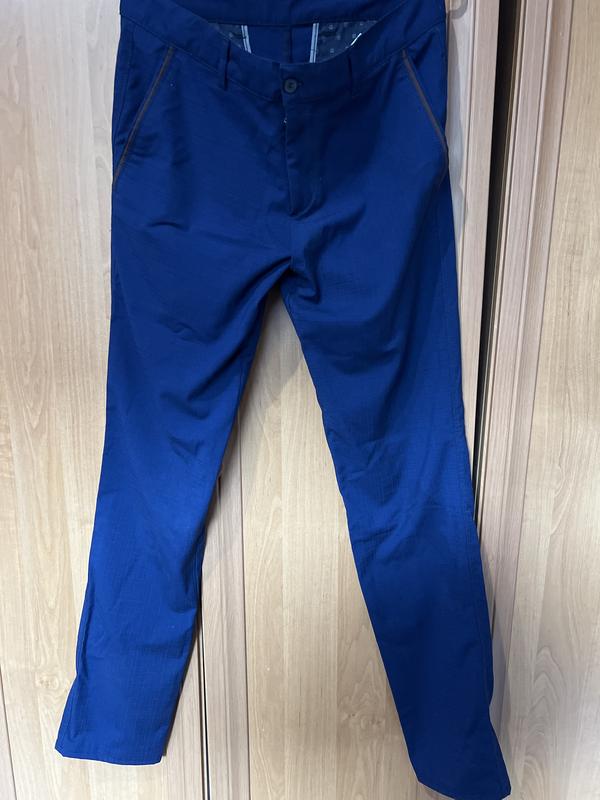 Принт: ледь видна клітинка Недоліків немає, тканина не тягнеться По талії 37 см По бедрах 48 см Довжина 106 см Ширина штанини (до коліна) 26 см