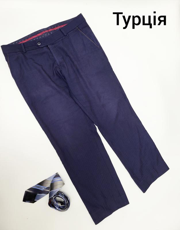 Чоловічі сині класичні брюки. Виробник Турція Розмір L Заміри: довжина штанів від поясу 95 см, півобхват поясу 46 см, півобхват стегон 57 см, висота посадки 29 см Матеріал: 20%- поліестер, 20%- віскоза, 60%- бавовна 👖Брюки: ✨️ Якісні ✨️Зручні ✨️Низька ціна 🎁При Замовленні від 5-х речей🛍, ви отримуєте від мене безкоштовну 📦доставку Новою Поштою😉