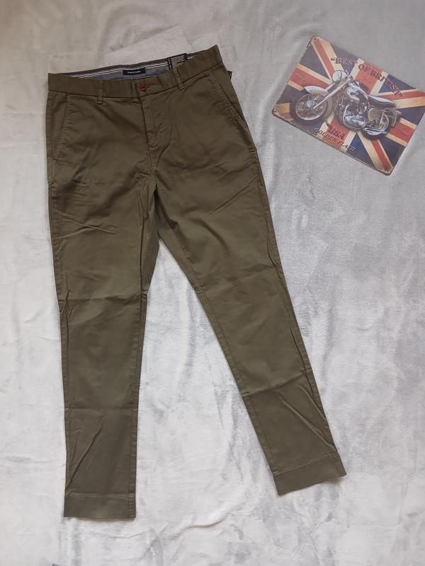 Чоловічі штани чінос бренду C&A. Розмір 30/32. Колір темно-зелений. Склад: 97% коттон, 3% еластан. Розмір 30/32: - Напівобхват пояс - 40 см, тягнеться до 41 см - Напівобхват стегон - 47 см, тягнеться 50 см - Повна довжина - 99 см, Крок - 75 см - Посадка спереду - 26 см - Посадка ззаду - 38 см - Штанина - 16 см