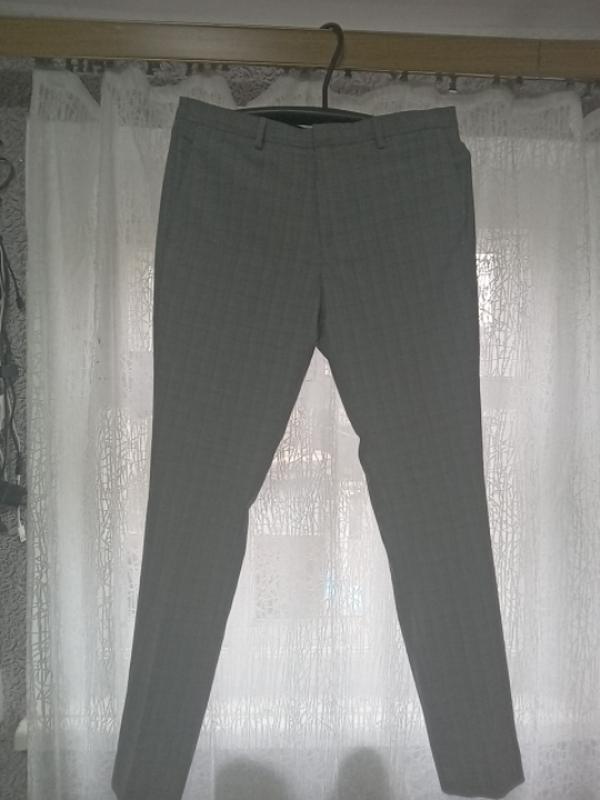 стан ідеальний,легкі,зручні,сучасні,ддуже гарні,пошив скіні- завужені..коолір сірий в клітинку,чудова річ пот 42 см поб 52 см довжина 106 см полуобьєм низа 16 см шаг 79 см посадка 27*39 см