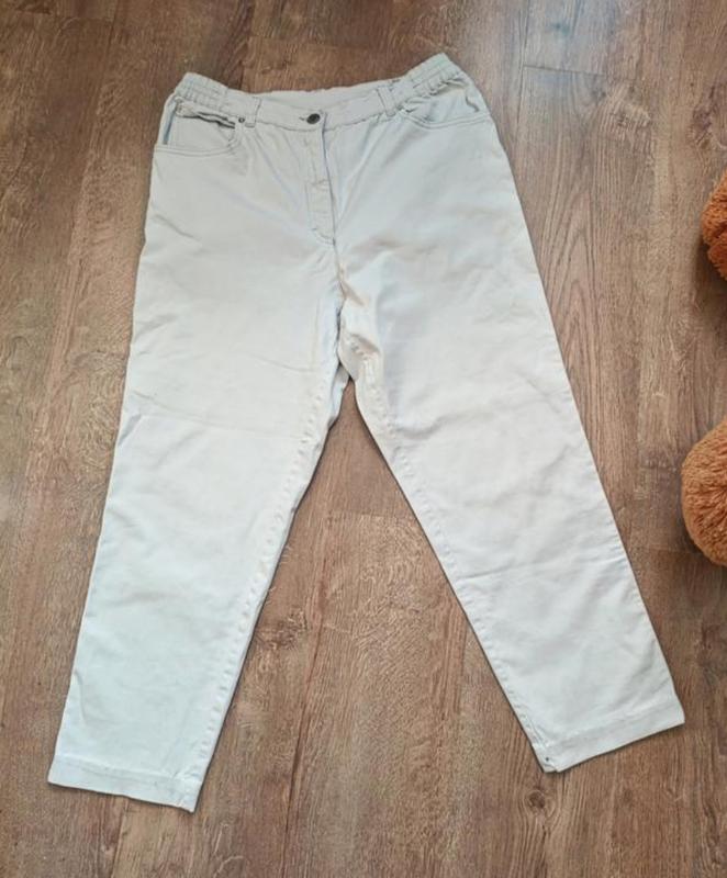 Брючки в идеальном состоянии, цвет не белый еле голубой или серый не могу передать на лето или весну, талия на резинке полхват талии 44 тянется до 50-52 см длина 93