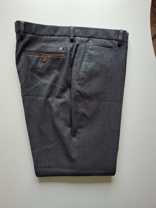 Чоловічі брюки від Next Склад: 64% поліестер, 34% віскоза, 2% еластан Сезон осінь-весна Колір сірий Брюки класичного крою, завужені, застібка на блискавку і гудзик, 4 кишені Тканина середньої щільності, трішки тягнеться Розмір W38 L29 XL Заміри: ПО в поясі - 49,5см ПОБ - 61см Посадка спереду/ззаду - 27/43см Загальна довжина - 101см Крок - 74см Ширина штанини верх - 36см Ширина штанини низ - 20см Тканина тягнеться Стан ідеальний