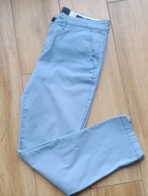 Чоловічі брюки небесно блакитного кольору фірми C&A в ідеальному стані ( стан нової речі). Тканина м'який Котон 98% і 2% Еластану. Розмір по бірці W34 L 32 , схема замірів на останньому фото.