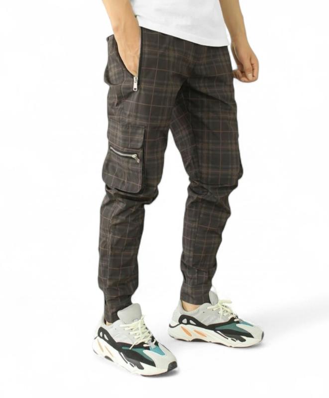 круті мілітарі-джогери від преміального британського бренду Represent. Стан ідеальний, без нюансів. Ці штани — база сучасного стритвіру. Виконані з щільного, зносостійкого матеріалу (на дотик як дорога курточна тканина), який відмінно тримає форму та створює фірмові складки на ногах. Фурнітура: Встановлені оригінальні швейцарські блискавки Riri (найвищий сегмент фурнітури, вічні у використанні). Дизайн: Класична клітинка Tartan у коричневих тонах. Крій: Завужений донизу, на манжетах. Пояс на резинці зі шнурком, що дозволяє комфортно регулювати посадку. Кишені: Багато функціональних кишень на металевих блискавках. Характеристики: Бренд: Represent (England) Розмір: L (також дивіться заміри) Склад: 100% поліестер (щільний, не продувається) Стан: 10/10 (відмінний) Заміри Напівобхват талії: ... см (тягнеться до ... см) Довжина по зовнішньому шву: ... см Довжина по внутрішньому шву (крок): ... см Ширина в стегнах: ... см Вихід манжета внизу: ... см