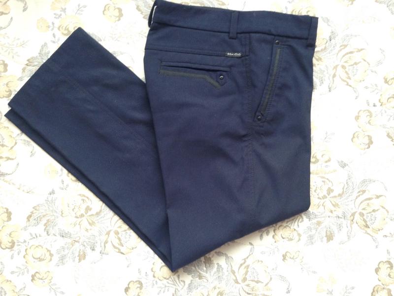 Штани темно-синього кольору зі стрілками, стан нової речі. Заміри: ПОТ-42 см, довжина -98,5 см, довжина бічного шва-75 см, ширина штанини внизу-21 см, на байковій підкладці.