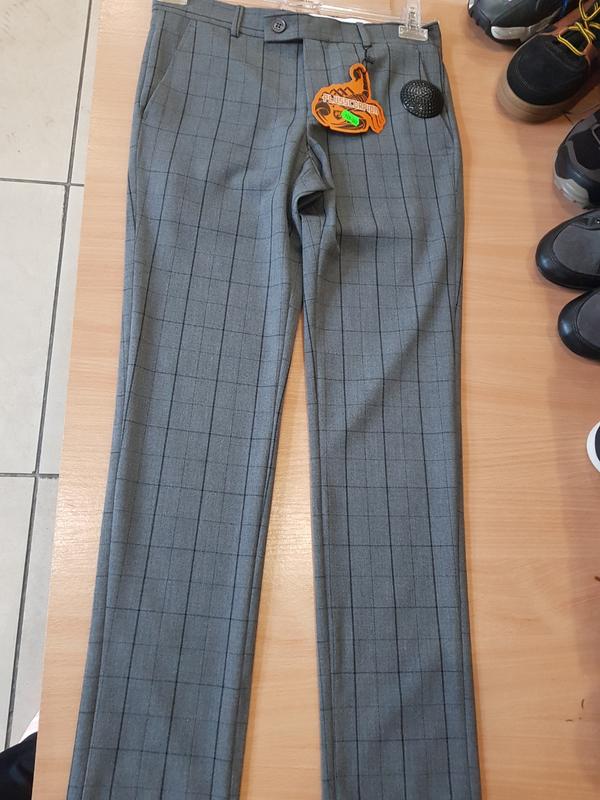 Штани чоловічі стильні приведені.Кармані хулігани.Заді теж кармані в рамочку.Низ штанів 16 див. Склад 60%подістер,37%віскоза,3%лайкра.