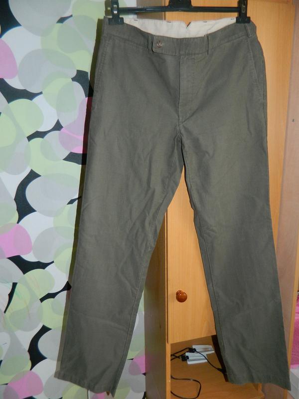 Классные брюки цвета хаки, новые без бирок. Ткань плотная, сезон весна- осень. Замеры : ПОП- 42, ПОБ- 49, длина - 110, шаговый -87, высота посадки спереди - 25, ширина штанины- 20 см.