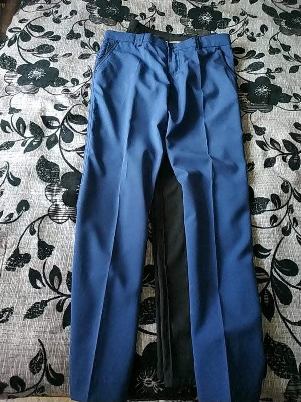 нові стильні брюки,раз одягнені.тканина тонка літня,колір красивий. дл-107см,крок-80см,шир пояс-42см,стегна-54см,від пояса вниз по ширінці-30см,попа-34см точний розмір не вказаний,визначайтеся з вимірами.