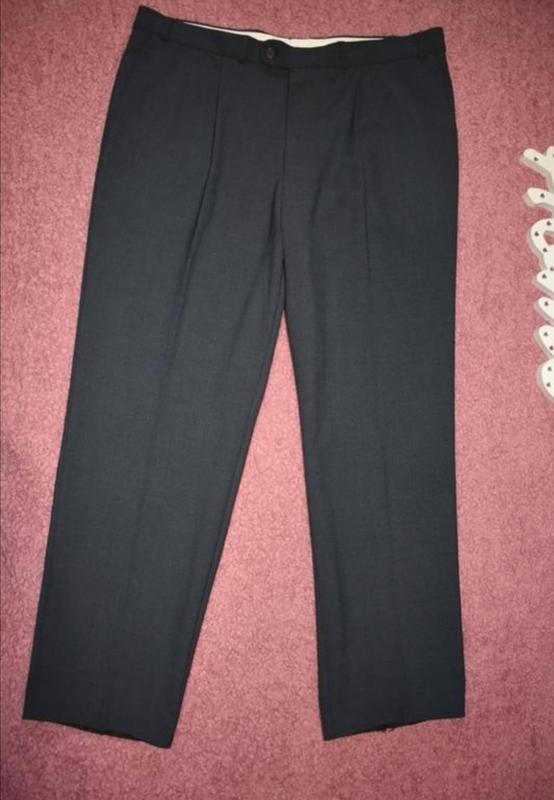 В ідеальному стані. Шикарне якість тканини люкс. Фактичні виміри: пояс 48см; ПОС 60см; посадка 36/39см; довжина виробу повністю по боку 102см; ширина штанини внизу 22,5см; ширина штанини в стегні 38см.