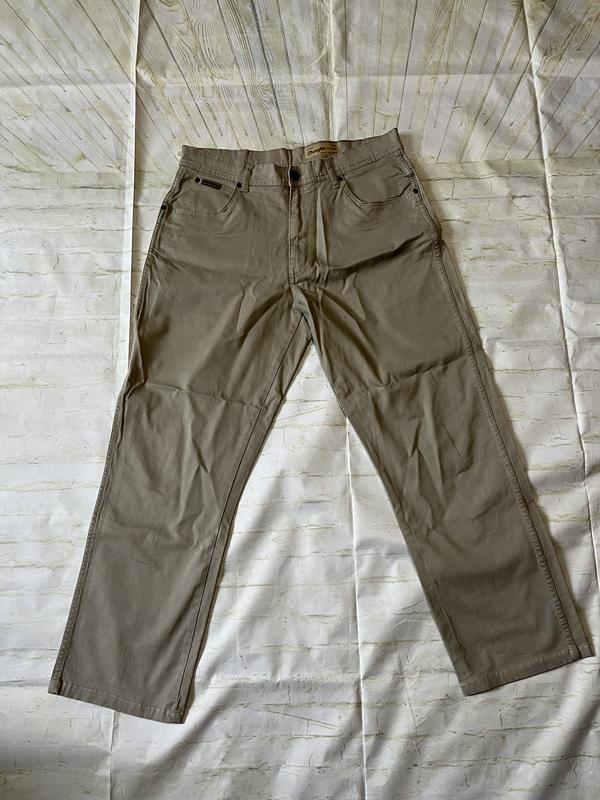 Базові чиноси wrangler,розмір 34/30 по бірці,на ділі маломірять на 32 Заміри: пояс 42, стегна 54,довжина 95,низ 19.5