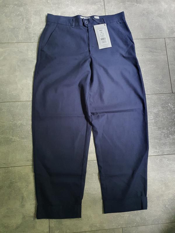 Літні штани фасону Regular. Колір темно-синій. Розмір 31. На блискавці та гудзику. З врізними кишенями по переду та накладними на гудзику по заду. На манжетах внизу. Середня щільність. Заміри: Довжина виробу 94см. ПОТ 40см ПОБ 51 см. ПО штанини внизу 19см. Довжина внутрішнього шва 69см. Висота посадки 26см. Склад: 57% бавовна, 40% поліестер, 3% еластан. За додатковими фотографіями звертайтесь. Оплата на карту Приват банку і доставка лише Новою поштою. Після покупки товар обміну та поверненню не підлягає.