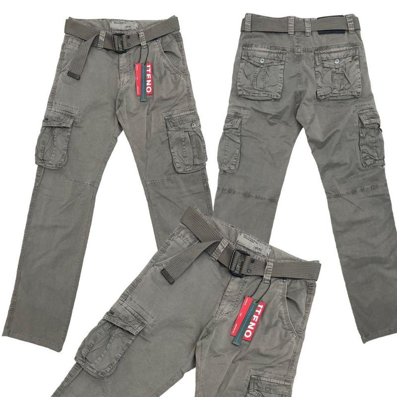 Джинси чоловічі iteno (tophero) р.32 літні, тонкі, прямі світло-сірі карго з накладними ки...