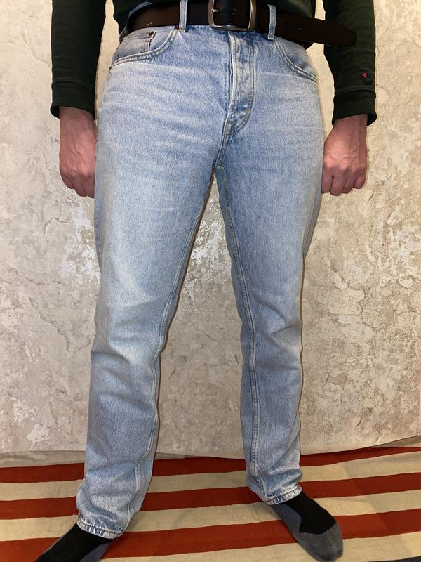 Чоловічі джинси від Zara demin since 1975,оригінал,всі лого та бірки присутні,модель прямі/звужені,мають 5 кишень,петлі для ременю,застібка на ґудзиках,стан відмінний без дефек,тканина 100 відсотків котон,котон щільний/цупкий не тягнеться враховуйте при замірах,розмір на фото,заміри напів обхват поясу 45,напів обхват бедер 58,напів обхват стегон 33, довжина 110,крок 80,висота посадки 41,5,ширина калоші внизу 20