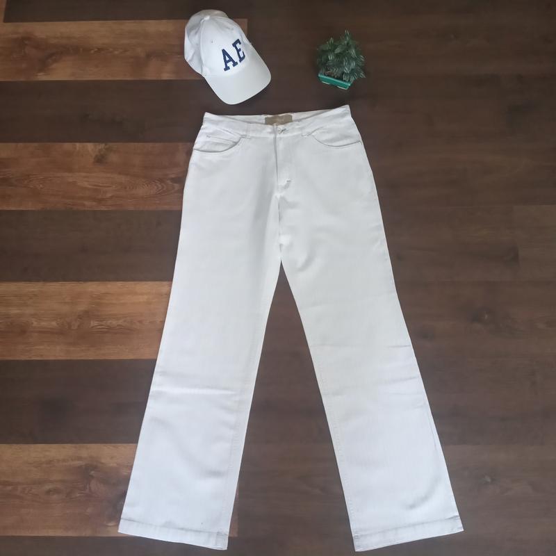Літні штани від Budget у розмірі 30/33. Стан чудовий. У складі льон, гарна ємність,Модна смужка. Заміри: пояс 39 см, стегна 52 см, посадка 26/34 см, довжина за зовнішнім швом 105 см. Оплата на карту.