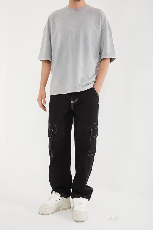 Чоловічі чорні класичні прямі джинси з боковими карманами
