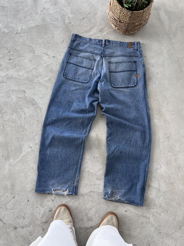 Вінтажні потерті сині скейтерські баггі джинси no fear широкий крій рідкісна модель sk8 y2...