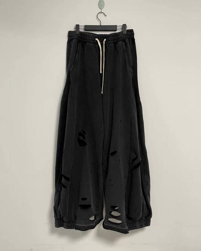 Tatim Remake Distressed Pants (Archive Opium) Уникальные черные брюки от Tatim в стиле remake/distressed. Архивная модель в концепции Archive Opium, созданная для тех, кто ценит экспериментальную моду и атмосферу дарк эстетики. ✔ Материал: плотный хлопок с винтажной отделкой ✔ Дизайн: умывальные потертости и разрезы (distressed effect) ✔ Посадка: oversize, с эластичным поясом и длинными шнурками ✔ Детали: стяжки снизу для объемной посадки ✔ Стиль: идеально подходит для streetwear, darkwear и avant-garde луков 📏 Размер L • Длина: 106 см • Талия (эластичная): 74 см • Ширина стегон: 106 см Это не просто брюки, а выражение стиля – сочетают комфорт и авангардную подачу.