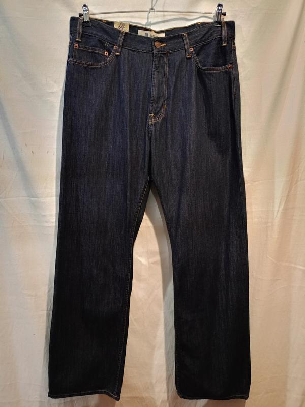Крій Easy Fit: Це класичний, досить вільний крій (regular fit) з прямими, не обтислими штанинами, що забезпечує високий рівень комфорту. Тканина: Щільний денім зі 100% бавовни. Колір: Насичений, глибокий темно-синій індиго (Rinsed - промитий, без потертостей). Класична п'яти-кишенькова модель. Жовта/помаранчева прострочка (контрастний шов). Якісна фурнітура, зокрема блискавка YKK. W36 L32: пояс 47-49 см пос 59-60 см довжина 111 см ширина нізу 24 см посадка перед 32,5 см.