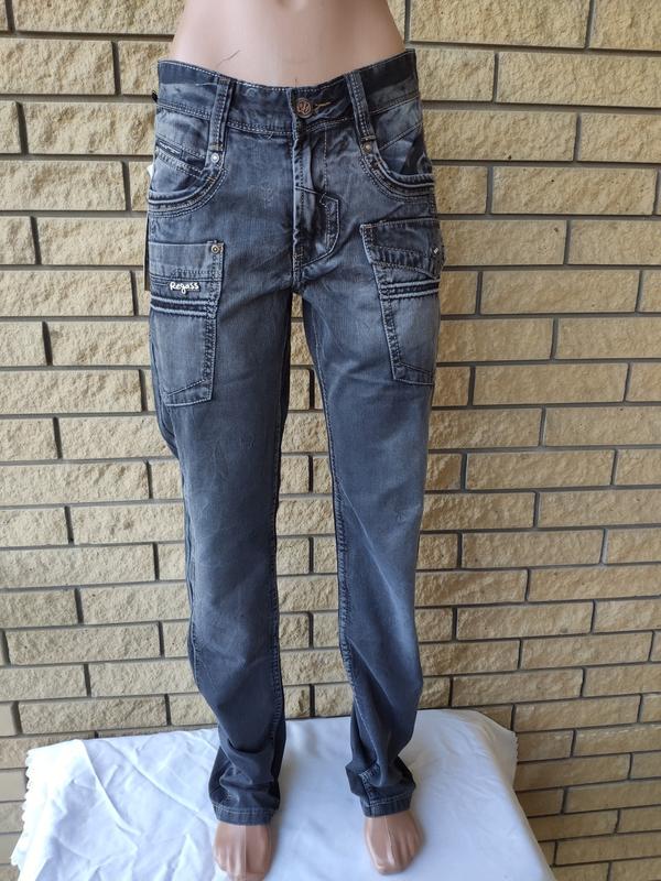 Джинсы мужские коттоновые REGASS, Турция, 100% коттон. Посадка средняя. Доступные размеры 30 Размерная сетка: 30 размер: окружность пояса-78см, окружность бедер-98см, длина джинсов- 110см;