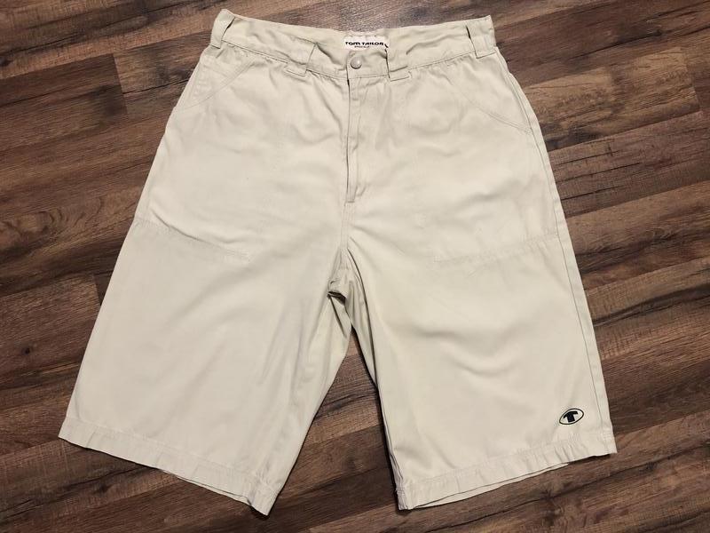Чоловічі шорти у відмінному стані,склад 100% бавовна,розмір вказано М,реальні заміри: довжина по боковому шву 60см, пошаговий шов 32см, пояс 41см, ширина (стегна) 51-52см, глибина посадки спереду 30см, ззаду 42см, ширина штанини внизу 30см. Стан відмінний,дефектів нема.