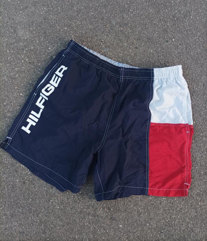 Крутезні вінтажні шорти Tommy Hilfiger з величезним логотипом через усю ногу , матеріал типу нейлону Розмір М стан ідеальний