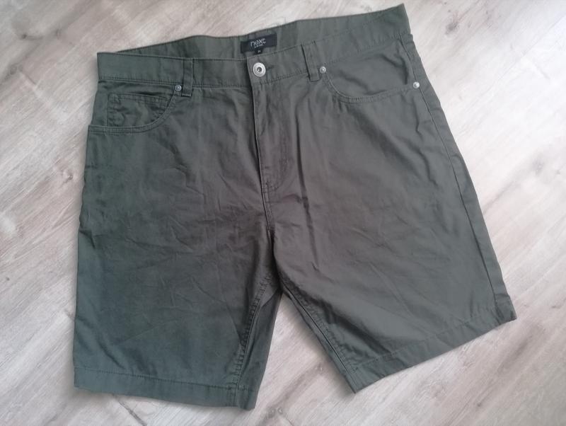 Чоловічі шорти чіноси. 5 кишень. Колір прямий. Стан: ідеальний Колір: темна олива Матеріал: 100% бавовна Розмір: 34 або L Заміри: НОТ 46 см НОС 56 см Довжина по боковому шву 47 см Кроковий шов 23 см Ширина штанини внизу 25 см Покупкою будете дуже задоволені))