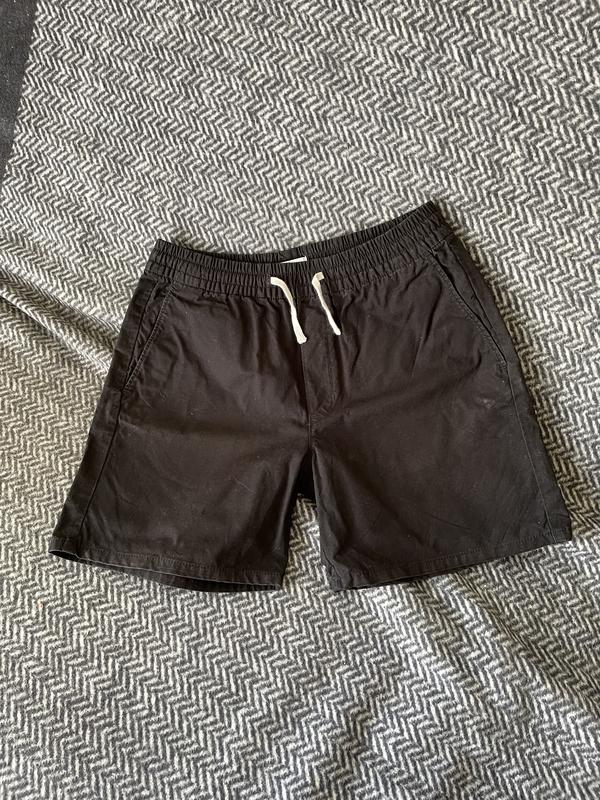 Мужские шорты от Weekday. Размер -- S, талия на резинке. Свободный крой, длина выше колена. Из плотного хлопка. Цвет черный, в жизни более насыщенный. Стан идеален.