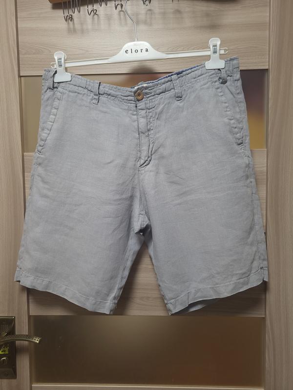 Шорти 100%льон.в ідеальному стані. Нюансів немає. Фурнітура з логотипом бренду. Талія 48(з середини на шнурках, можна регулювати). Довжина 51