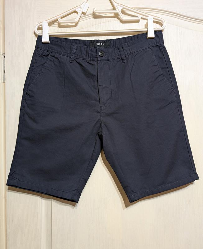 Якісні оригінальні шорти від німецького бренду Smog, колір темно синій, 100% бавовна. Стан - нові без бірок, без дефектів та нюансів. Розмір по бірці S, по факту підійде на W30, W31, худий W32 дивіться заміри Довжина - 49 см Ширина в поясі - 41.5 см Посадка спереду - 27 см Ширина штанини внизу - 23.5 см Дивіться мої інші оголошення.