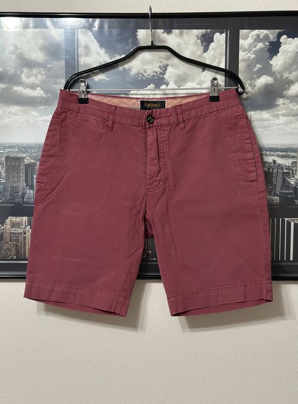 Чоловічі шорти Farah розмір M / 32. У відмінному стані. Є гарне поло у поєднання до шортів, один розмір - додано у фото. Ширина поясу 41,5 см; Зовнішня довжина (від поясу до заходу) 48 см; Ширина штанини у колінах 24,5 см; Ширина у стегнах 26 см.
