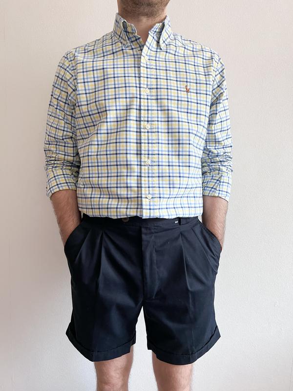 Легкі вінтажні шорти чино на літо. Приємний матеріал, гарні виточки спереду, колір темний нави Розмір можна регулювати, відмінно на 42см, можна зменшити до 38см. Виходить за US системою це W30-32 хоч на бирці і вказано 34. Стан ідеальний без нюансів Довжина – 45см Пояс – 42см, можна зменшити до 38см Стегна - 54см Висота посадки – 30см