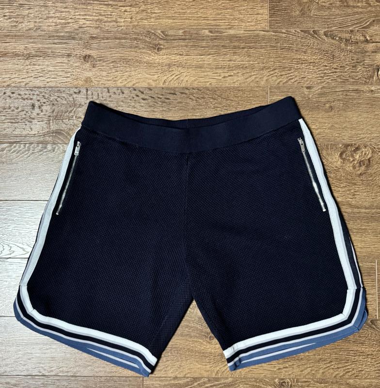 Шорти англійського люкс бренда Reiss, колір темно-синій, склад: 63% віскоза,37% поліамід, продуктивність Китай, розмір L, розміри (п/об'єм пояс гумка 44-49, у стегнах 59, довжина по зовнішньому шву 48.5, по внутрішньому 22.5,ширина внизу 33).