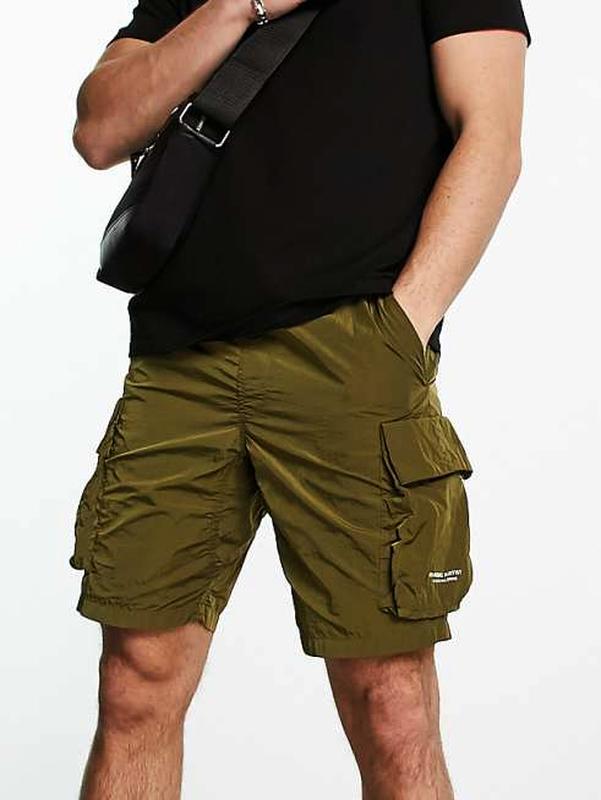 Marshall Artist krinkle nylon cargo shorts MSATM10671 Оригінал ! Абсолютно нові з бірками, запаковані. Вказано L розмір - маломірить на S-M Пояс: резинка + шнурок Пояс 40-43 см, довжина 51 см, бедра 53см Без підкладки 4 бокові кишені + 1 ззаду 100% Polyamide Дивіться інші мої лоти, ціни Вас приємно здивують! Без торгу !