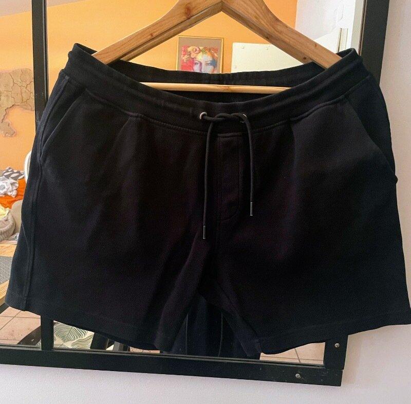 Чоловічі шорти - 100% Бавовна (дуже якісний трикотаж середньої щільності) Розмір L Пояс на трикотажній гумці 41-45 см(затягується шнурком) Посадка зпереду та ззаду 25/37 см В стегнах 56 см Ширина штанини 28 см Довжина збоку 40 см Довжина внутрішня 14,5 см Дві кишені по боках та одна ззаду Відмінний стан Торгу немає