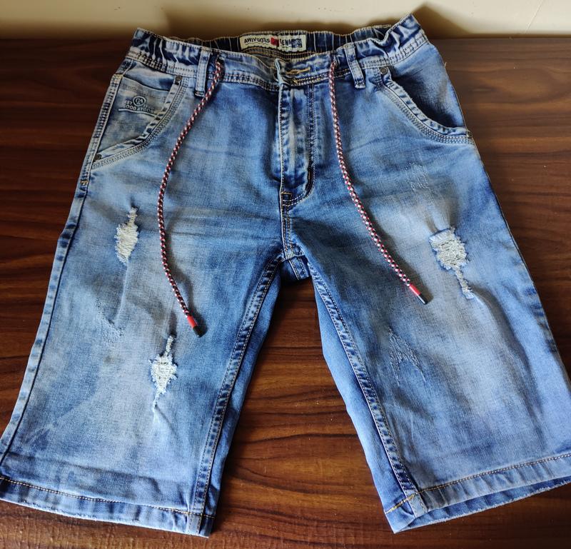 Заходьте на сторінку. Майже нові речі, не дорого. Шорти M-ка, 32 розмір. На молодого високого худощавого хлопця. Ідеальний стан, гарно сидять, красиво виглядають. резинка+шнуровка+замочок, декор- потертості, емблема ззаду. 4 кармана Ширина - 38, об'єм виробу - 80, довжина - 53, об'єм в бедрах - до 100 , об'єм ноги внизу шорти - до 47 см. 70% катон ( натуральна дихаюча тканина ) 20% поліестер + 2% еластан ( щоб тримали форму після прання , не розтягувались ).