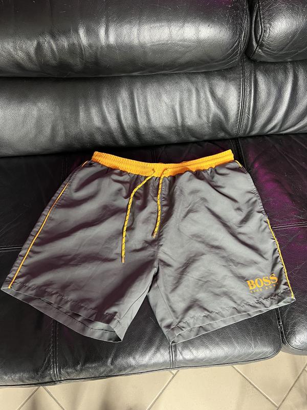 Стильні чоловічі шорти від бренду BOSS Hugo Boss. Колір: сірий із яскравими помаранчевими вставками та логотипом. Розмір: M Стан: нові, без дефектів Матеріал: швидковисихаюча тканина, є сітчаста підкладка Ідеально підходять як для плавання, так і для повсякденного носіння. Оригінал, є внутрішні бірки та QR-код для перевірки.