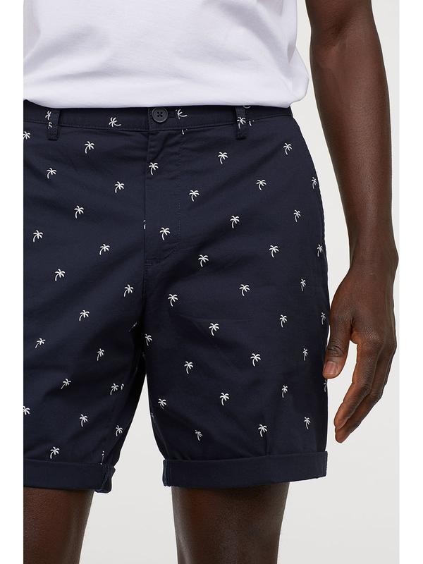 Шорты-чиносы из стираного хлопкового поплина. Модель с застежкой на молнию. Боковые карманы, прорезные карманы с пуговицей сзади и брючины со стрелками. Шорты в пальмы H&M. EUR 32. ПОТ 44 см ПОБ 54 см ПО внизу 27 см Посадка 33 см Длина по боковому шву 50 см Бренд H&M Подписаться на бренд Страна Бангладеш Состав 100% хлопок Последний размер есть Сезонность Лето Код товара 5744331