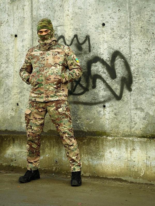 Костюм мультикам Single Sword 4750 грн Куртка - Материал изделия soft shell (внешняя сторона ткани камуфляжного цвета, внутренняя сторона микрофлис). - Подклад на куртке из микрофлиса. - Благодаря уникальному крою куртка не сковывает движения. - В изделии 6 карманов (два кармана стандартные на молнии, два кармана на рукавах тоже на молнии, один нагрудный карман на молнии и один внутренний карман). - Рукав фиксируется липучкой. - Съемный капюшон затягивается резинкой с фиксатором. - На рукавах и на груди есть липучки для шевронов. - По бокам по низу есть молнии. Открыв их можно улучшить вентиляцию воздуха под курткой и сделать движения еще более свободными. Штани - Материал изделия soft shell (внешняя сторона ткани камуфляжного цвета, внутренняя сторона микрофлис). - В изделии 6 карманов (2 прорезных с переда, 2 из зада и 2 кармана на молнии на бедрах). - Талия на пуговице и ширинке. - Есть широкие лямки под ремень