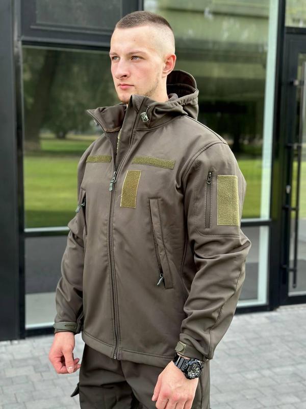 Кілька примірників у наявності Демісезонна куртка зроблена з якісної тканини Soft Shell, яка не пропускає воду. На кожній кишені є замок. На передній частині куртки розміщені 3 кишені для рук (одна нагрудна та дві знизу). На лівому рукаві 1 кишеня, на правому рукаві також 1 кишеня на замку. На рукавах також є зносостійкі липучки для шевронів. Верхня багатошарова тканина софтшел: зовнішній матеріал — волого- та вітростійкий, внутрішній матеріал — фліс, який зберігає тепло. Капюшон і низ куртки регулюються за шириною для кращого зберігання тепла, захисту від вітру та дощу.Також на капюшоні є невеликий козирок для захисту від вітру та пилу. На спині куртка подовжена для захисту від продування, також є 2 кишені на замку. Куртка обладнана двома вентиляційними отворами під кожною пахвою. Розмір: 42