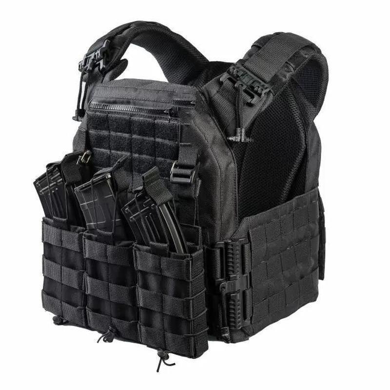 Кілька примірників у наявності Комплект: плитоноска + 3 підсумки під АК матеріал: Cordura 1000D Фурнітура для швидкого скидання виробництва 2М 3D вентиляція для підвищення комфорту Текстильні застібки виробництва Velcro/Alfatex регулювання за висотою для розмірів від S до XXXL регулювання камербанду за об'ємом для розмірів від S до XХХL еластична вставка на камербанді передня знімна MOLLE-панель передня частина має кишеню для особистих речей м'які панелі для кріплення ідентифікаторів та пачів сумісний із плитами розміром 250х300мм Боковини надійно тримаються на липучках та мають можливість вставки бічного балістичного пакета. Завдяки простій конструкції, заснованій на шести елементах - передній панелі, задній панелі, 2-х поясах, 2-х комфортних плічках і використовуваної швидкознімної фурнітури, у користувача є можливість швидкого скидання жилета за 1 сек. Внутрішня частина жилета виконана дистанційною сіткою, що підвищує комфорт при носінні.