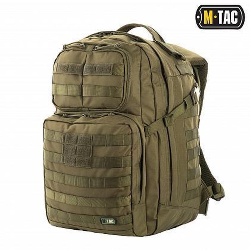 Кілька примірників у наявності від бренду M-Tac відноситься до категорії тактичних рюкзаків і підходить для різних видів активної діяльності. Кількість запасів, які поміщені у внутрішній простір, за стандартами, вистачає на 24 години. Робоча ємність основного відділу дорівнює 34-м літрам, що вистачає для перенесення різного спорядження і важливих деталей. Є спеціальні відділення для розміщення ідентифікаційних бейджів і документів. Розміри: 50 х 40 х 25 см Об’єм: 34 літри. Матеріал: 600D поліестер з полівінілхлоридним покриттям (ПВХ). Оскільки матеріал має високу щільність, то тканина добре відштовхує воду, тримає форму та має високу міцність. Головна особливість тканини в тому, що внутрішня поверхня матеріалу 600d поліестер, який ніби прорезинений. Тканина покрита однорідним шаром полівінілхлорида, що забезпечує високі властивості водовідштовхування і зносостійкості. Особливості: - Більше 14 відділень для спорядження. - Ідентифікаційна велкро-панель для бейджів, нашивок. - Відділення для окулярів, оснащене м'якою флісовою підкладкою. - Функціональний органайзер в передній частині рюкзака