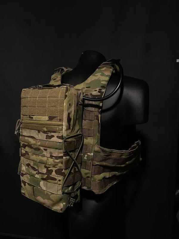 Кілька примірників у наявності Cordura D1000 MultiCam Штурмовий рюкзак на задню панель плитоноски під гідратор, або інші необхідні речі Кріпиться за допомогою системи MOLLE. Має велику кишеню на блискавці, та меншу в середині. На зовнішній частині рюкзака є велкро панель, та MOLLE інтерфейс. Рюкзак оснащений еластичним шнуром по периметру, що дозволяє найдійно фіксувати вміст сумки. Зручна та необхідна річ яка неодмінно знадобиться в умовах сучасної війни. Розмір 20*35*8 Отвори для трубок біля ручки з права та ліва