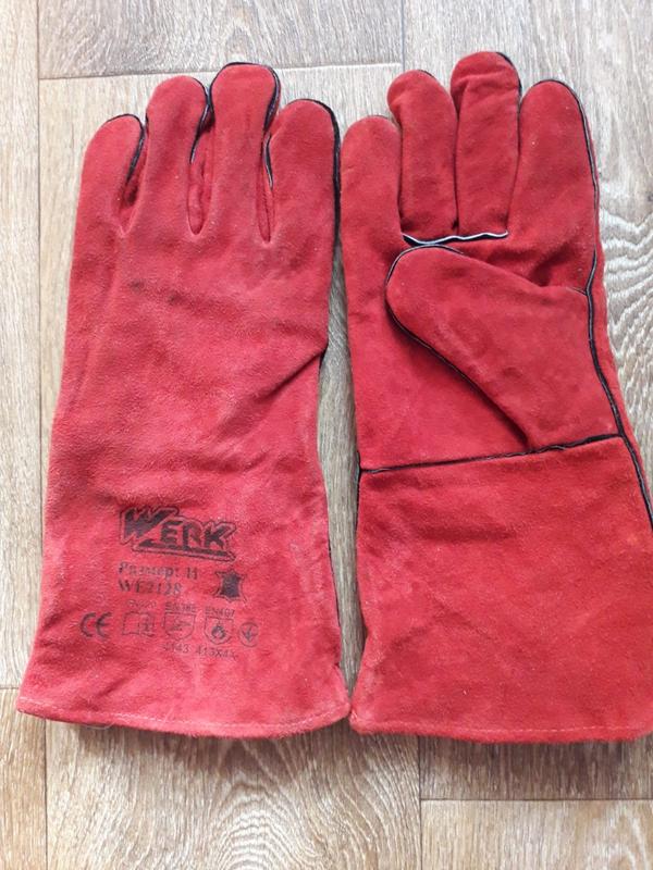 Краги WERK Продам краги зварювальника WERK, склад - замша/трикотаж, розмір - 11, довжина - 35 см.